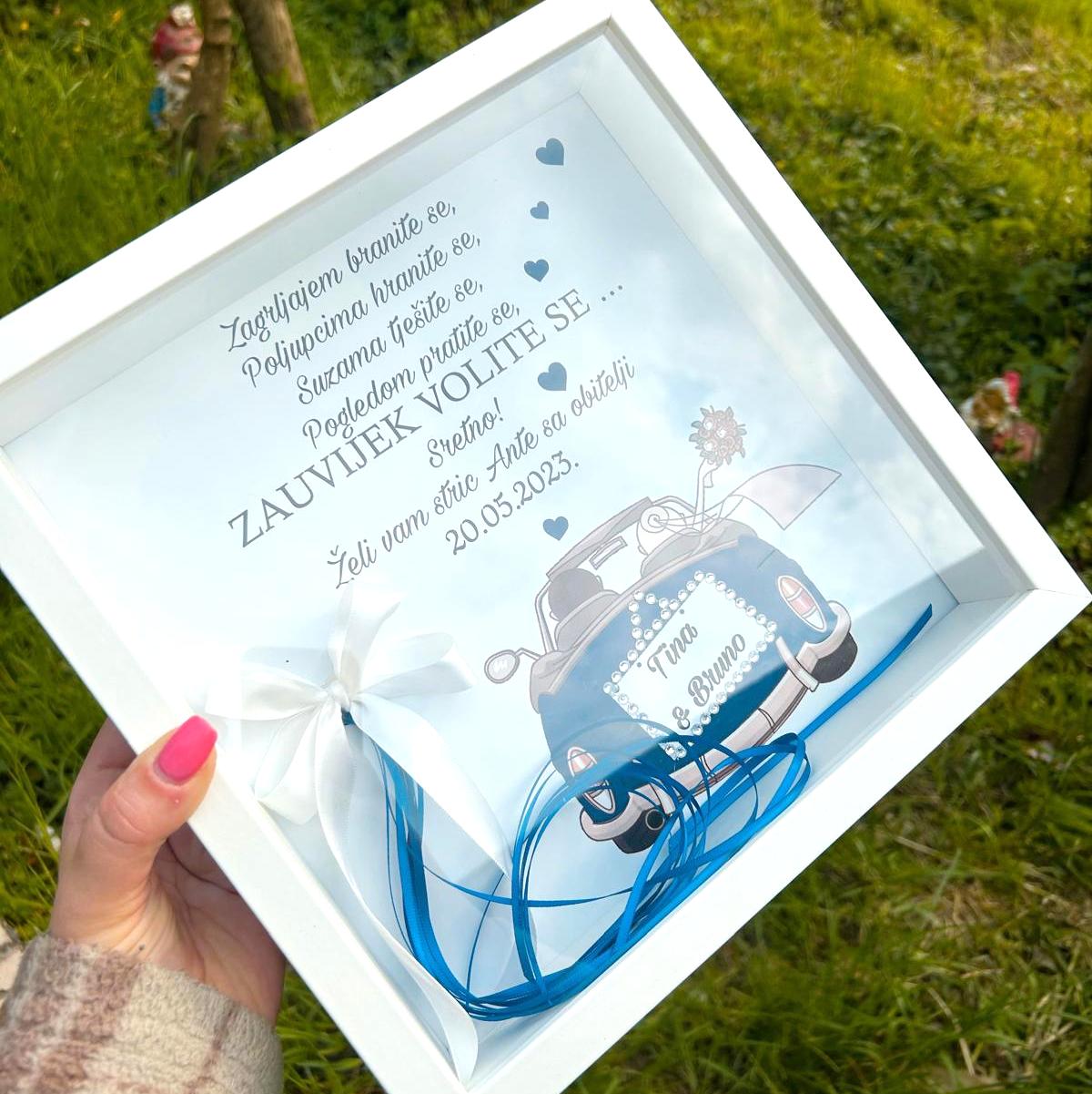You have decided to give money to the newlyweds for the wedding , but you also want to leave them a memory? This frame is the ideal choice for you. Once the money is taken out of the frame, it remains a lasting memory for the newlyweds.