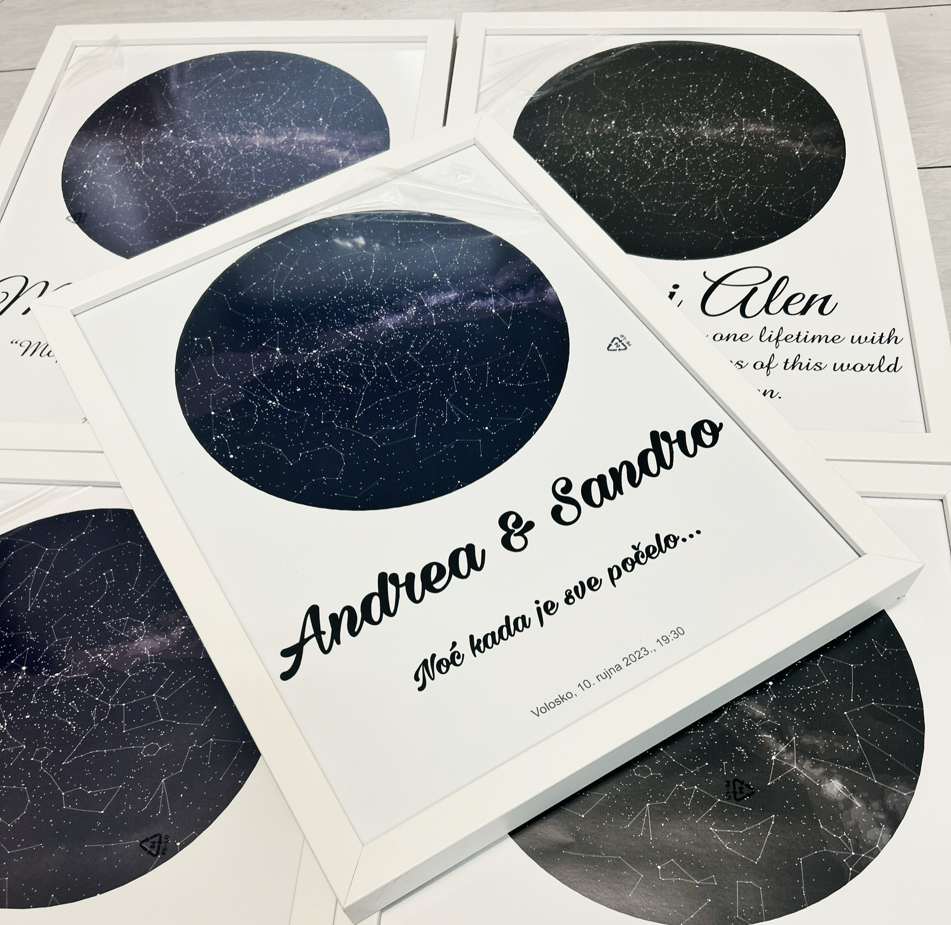 The starry sky is an original gift that shows the astronomically accurate arrangement of the stars at a precise moment. This personalized gift is ideal for all occasions (birth of a child, birthdays, relationship and marriage anniversaries, engagements, weddings and all other celebrations).