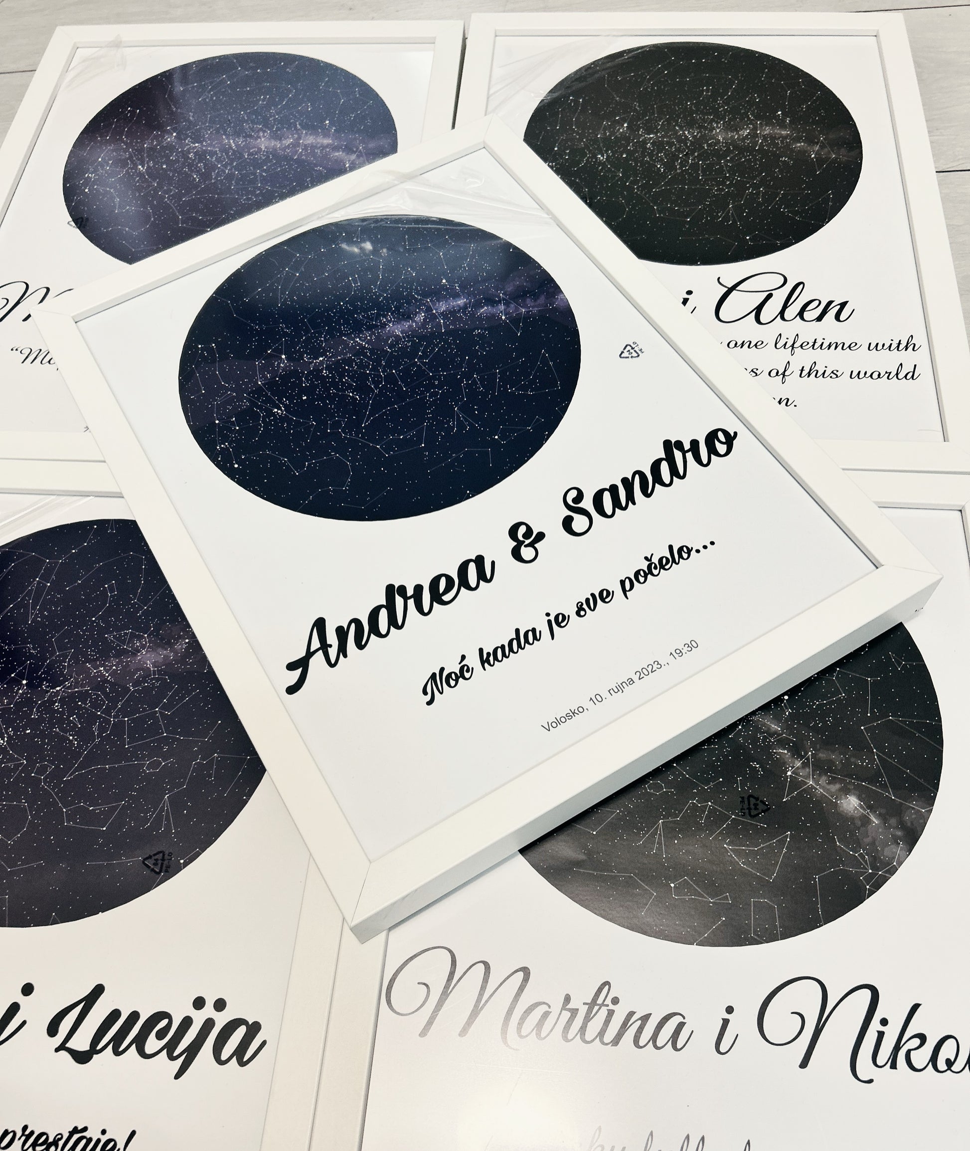 The starry sky shows a unique arrangement of stars on you special moment in life. Whether it's a date of birth, wedding, anniversary...