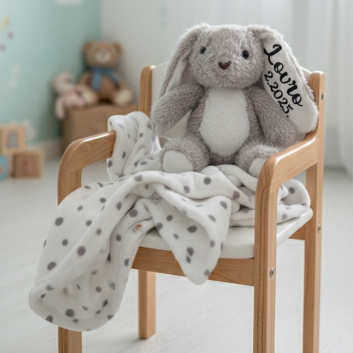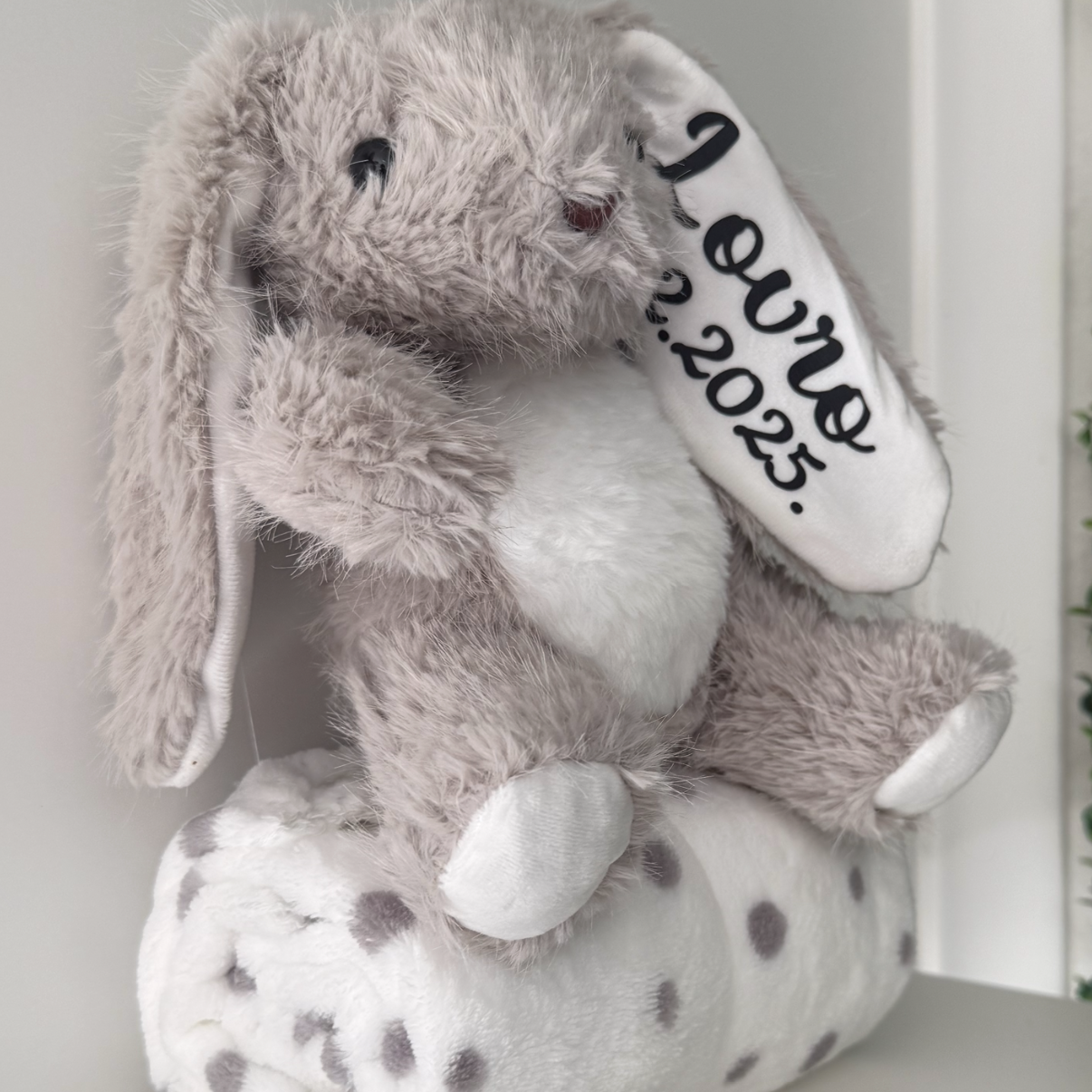 • Sadržaj seta: Plišani zeko i pripadajuća mekana dekica.