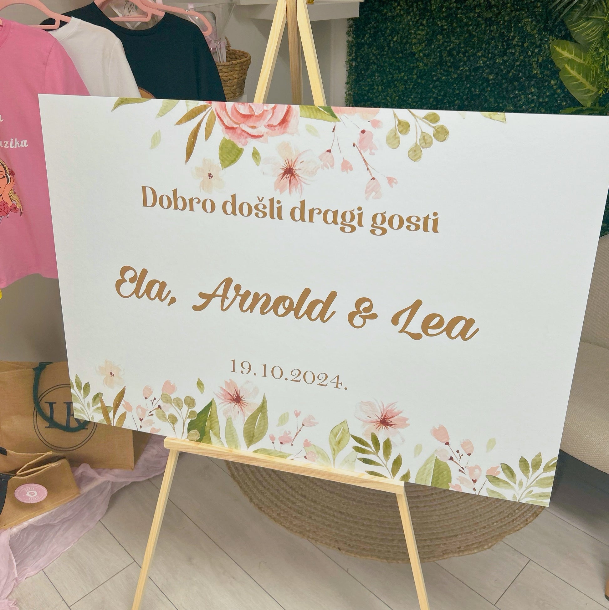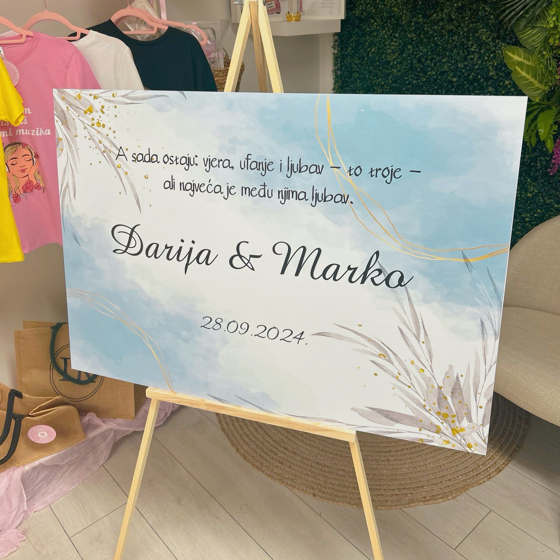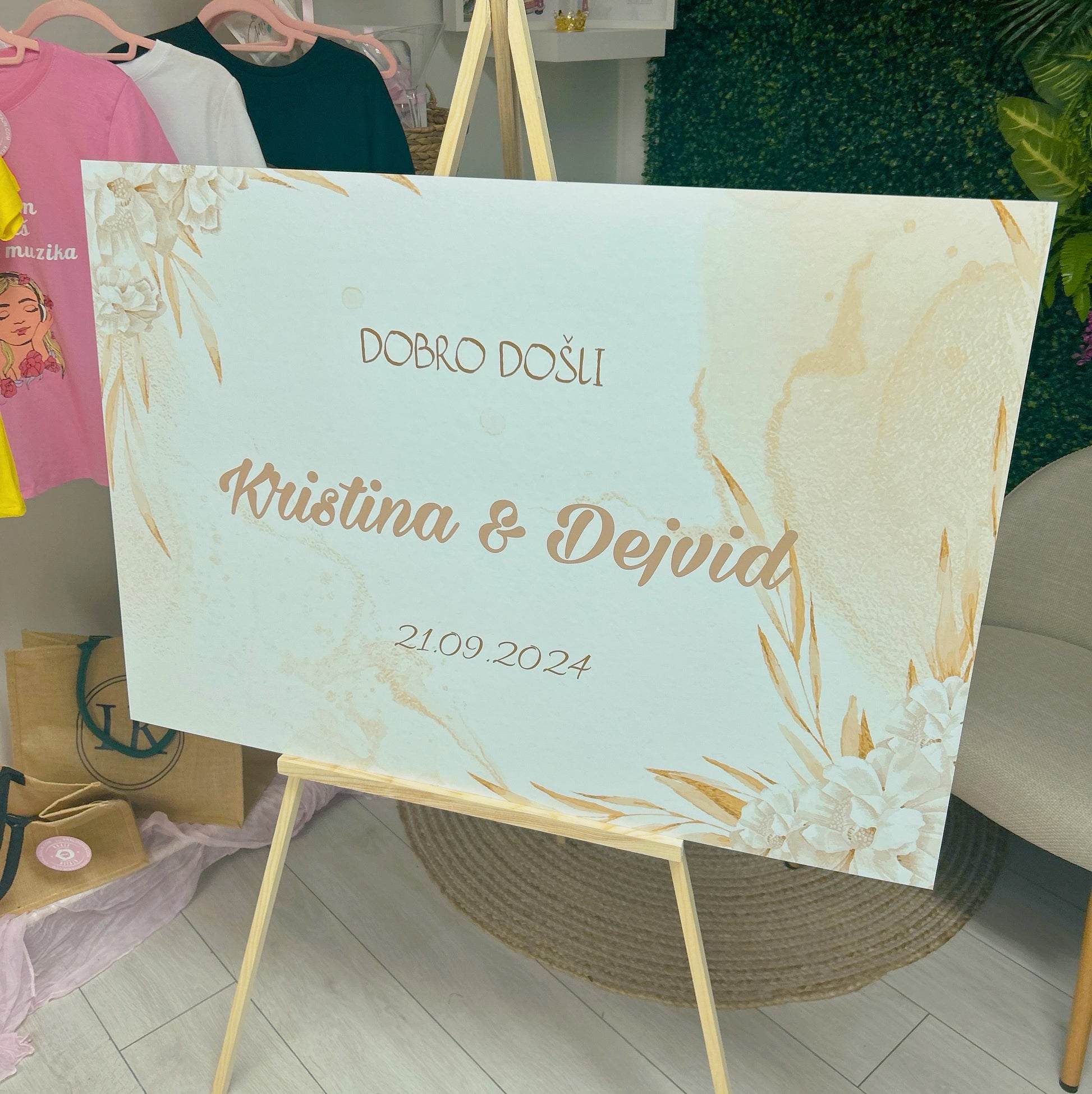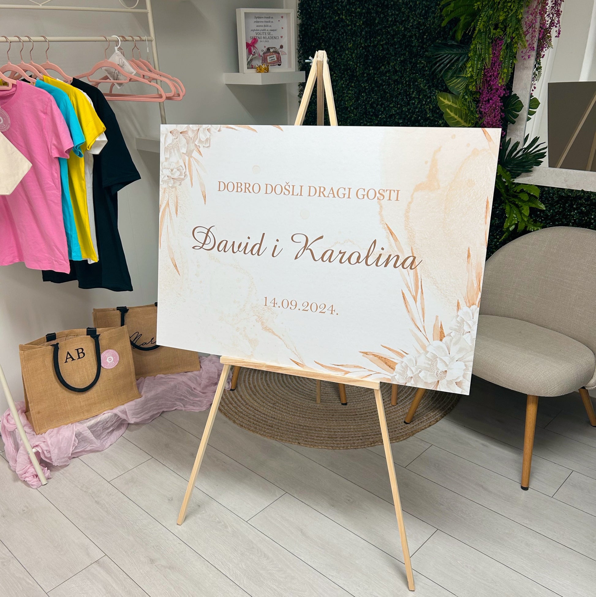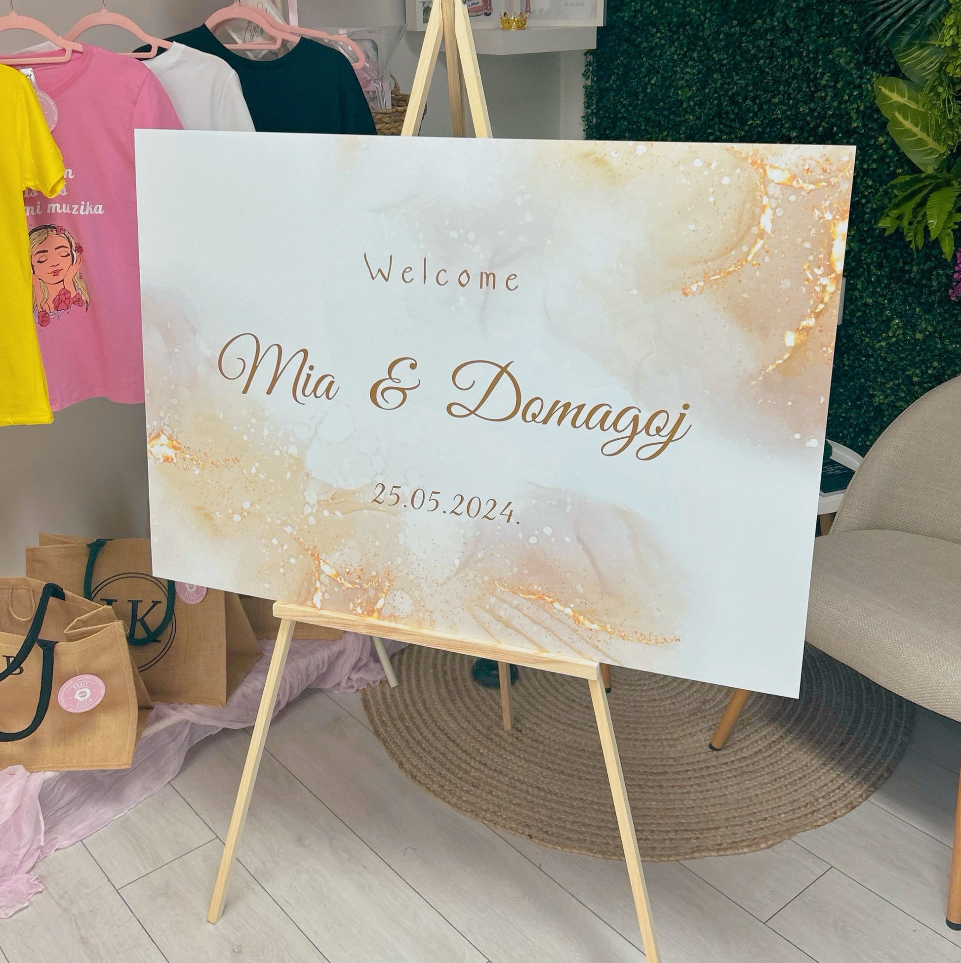 Welcome your guests in an elegant way with a personalized wedding welcome board. Personalize every detail on your own so that it fits perfectly with the rest of the details at your wedding. This decorative wedding plaque will delight every guest.