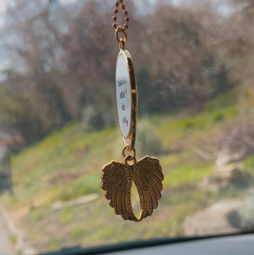 The product comes in a gift box. On one side is your picture, and on the other is the dedication "Someone is driving slowly, waiting for you and loving you".