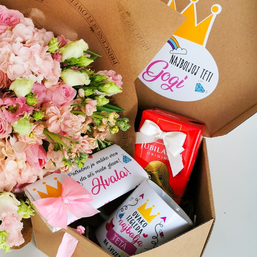 Flowers are not included in the price, and for the Zagreb area you can order them at Princess of Flowers