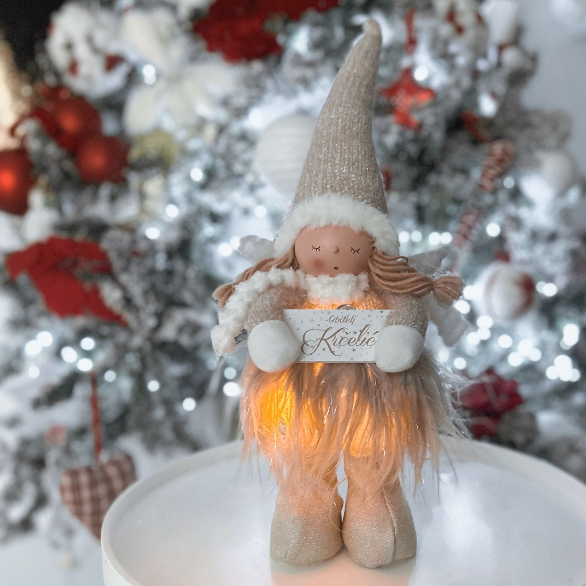 Prekrasna božićna dekoracija ili poklon dragoj osobi. Ovaj anđeo neće nikoga ostaviti ravnodušnim. Visina anđela je 46 cm i može samostalno stajati na "nogama".