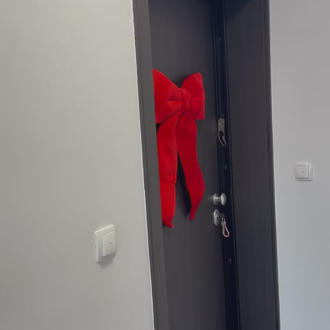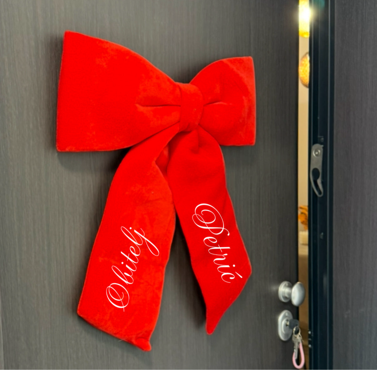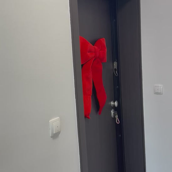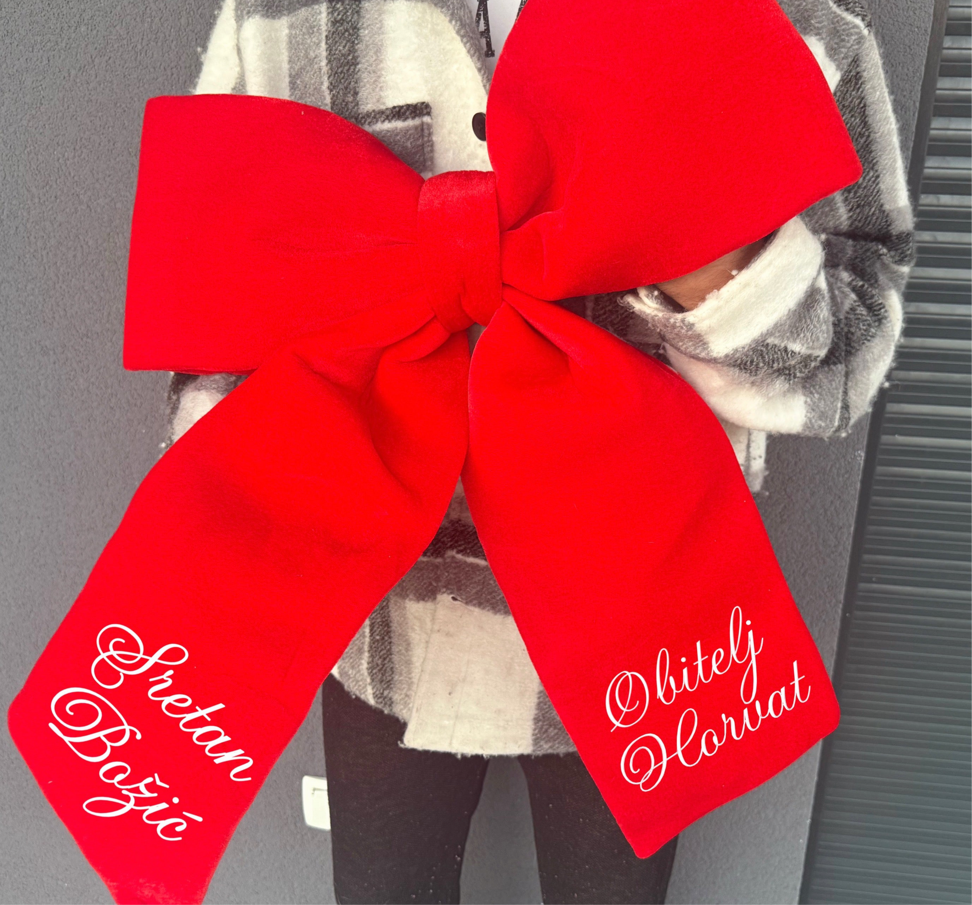 Prekrasna velika mašna od plišastog materijala s punjenjem idealna je dekoracija za vrata ili vrh bora.