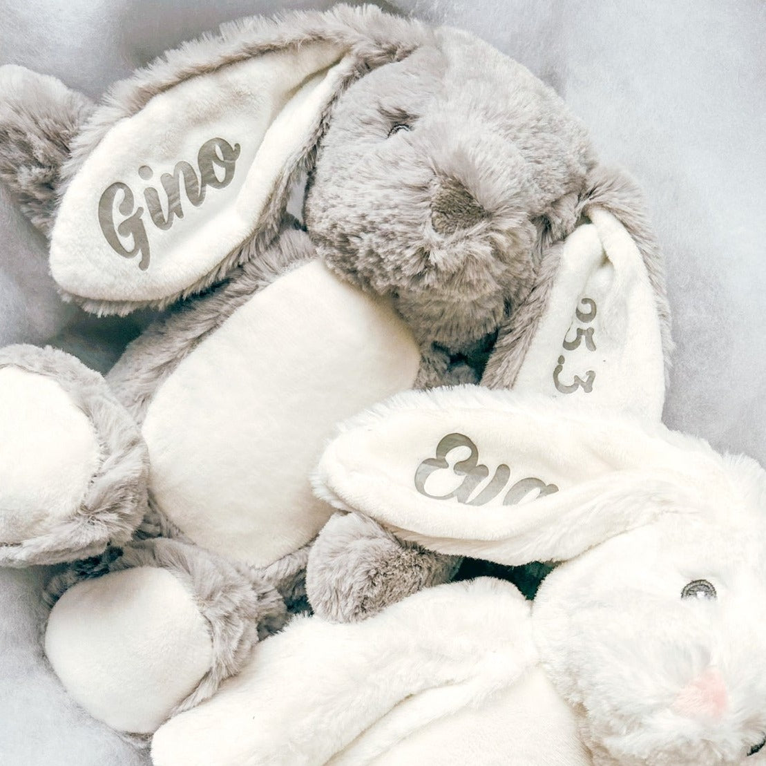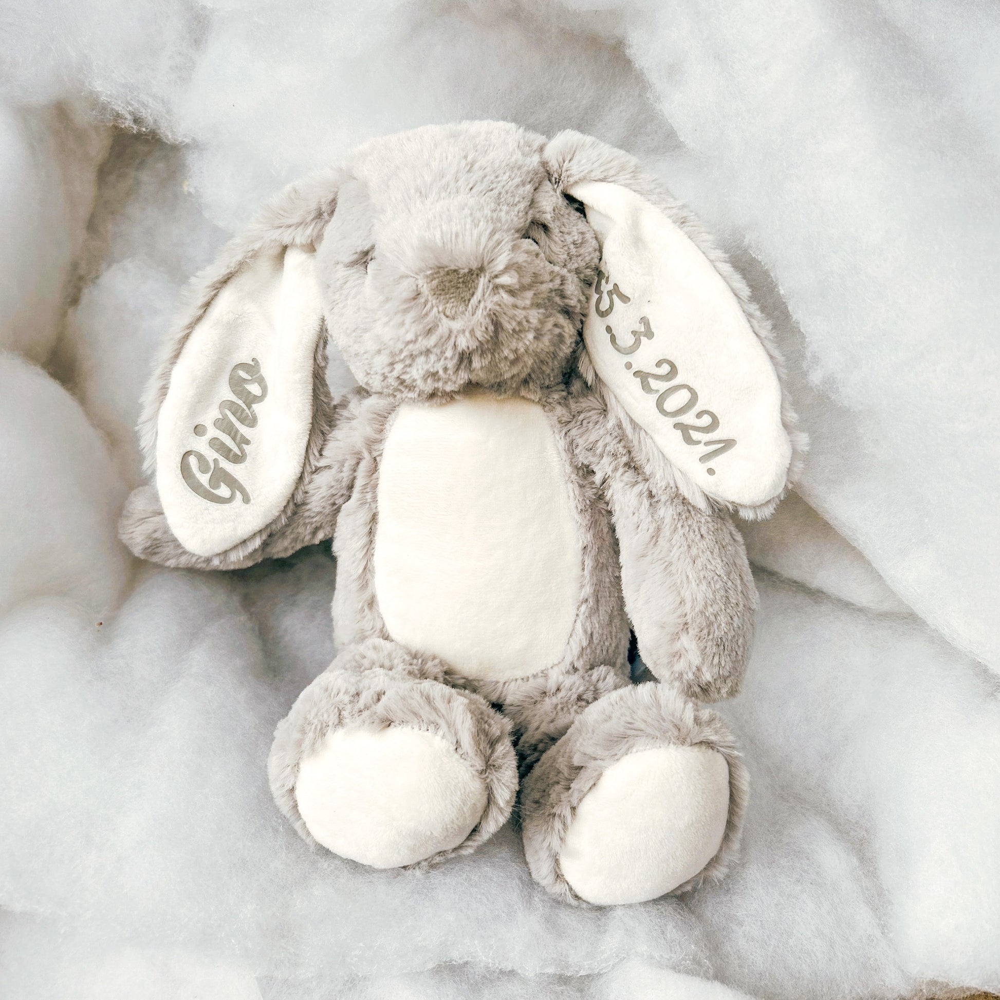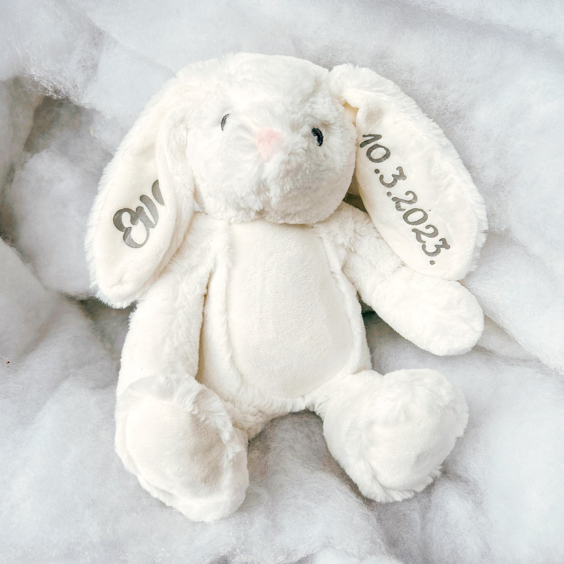 Personalizirana plišana igračka za svoje najmlađe. Zeko je visine 33 cm. Idealan poklon za babinje, krštenje, rođendan.