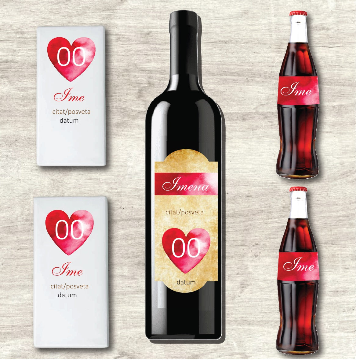 Za narudžbu u predviđeni prostor potrebno je napisati ovisno o odabranom dizajnu: ime/na, datum, citat/čestitku (npr. sretan rođendan, čestitamo), itd. Upisani tekst ćemo rasporediti na etiketama rasporediti prema predlošcima.