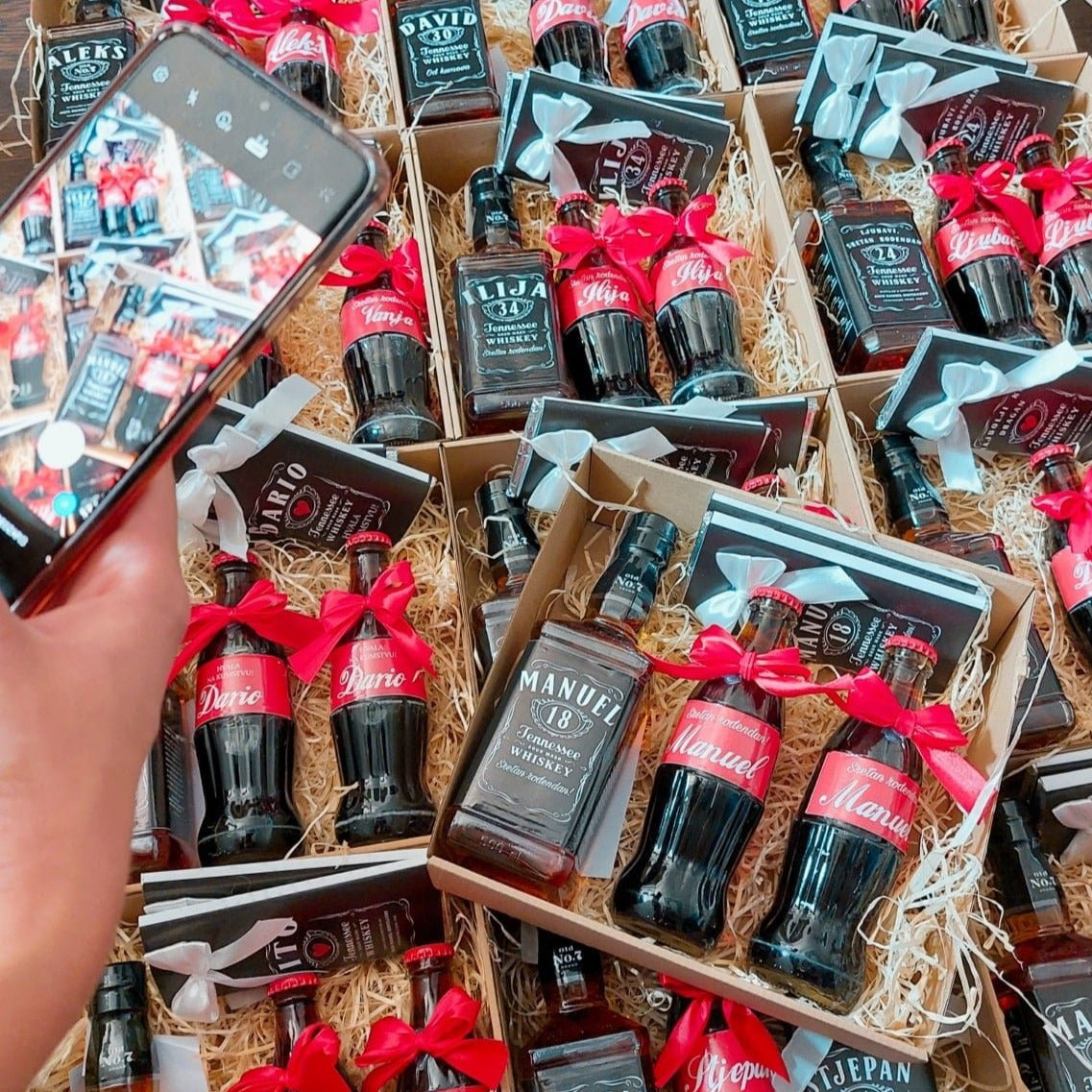 Molimo da prije narudžbe pogledate sliku na kojoj su prikazane pozicije određenih natpisa. Izgled tiska na čokolade jednak je izgledu etikete na boci.