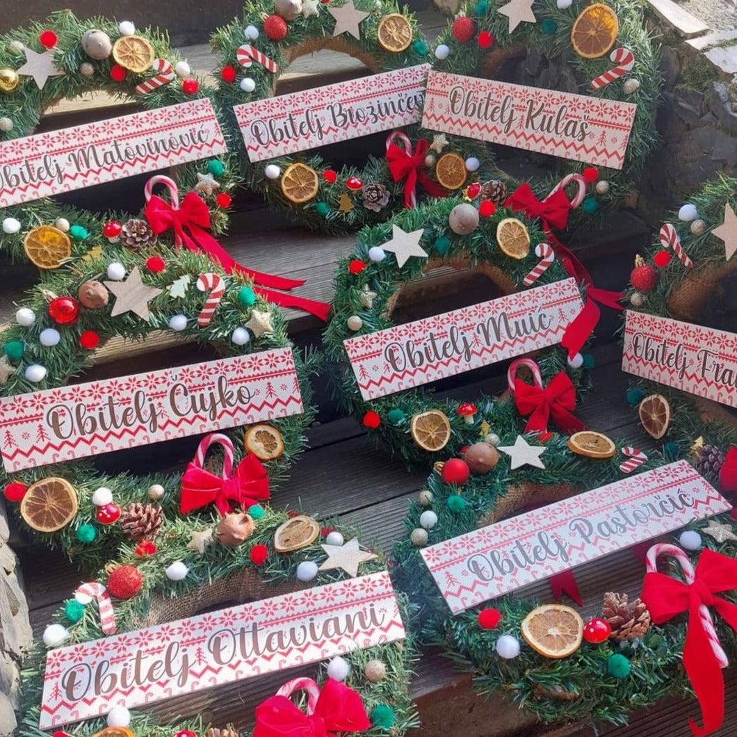 Material: Juta, PVC girlande, PVC in leseni okraski, forex, pliš.