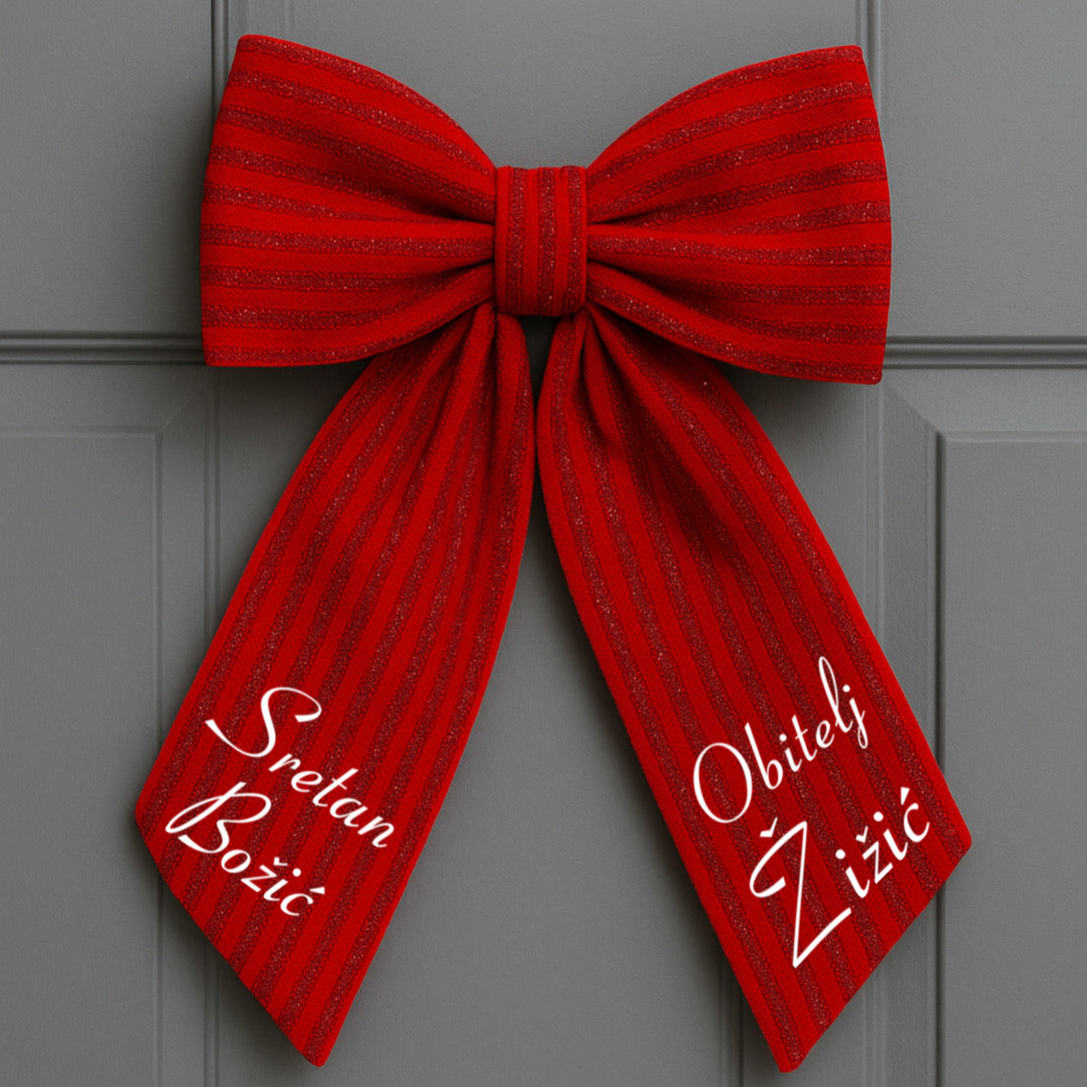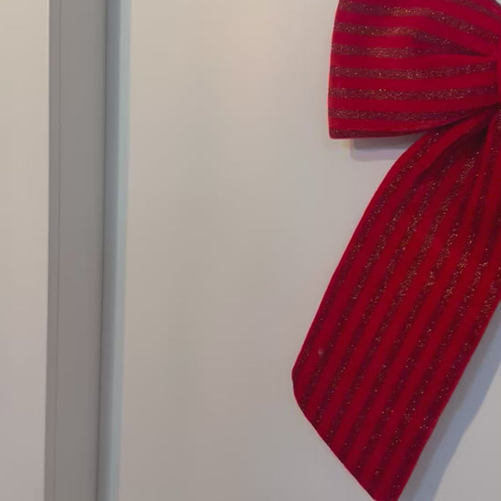Prekrasna velika mašna od plišastog materijala s punjenjem idealna je dekoracija za vrata ili vrh bora.